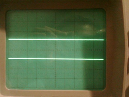 Die Röhre ist so gut wie überhaupt nicht eingebrannt, es gibt eigentlich keine "Schlieren" und der Strahl ist scharf und hell (wenn man ihn denn so einstellt). Das einzige, was in dem Zusammenhand erwähnenswert wäre: Es dauert nach dem Einschalten etwa 30 - 40 sec. bis die Röhre was anzeigt.