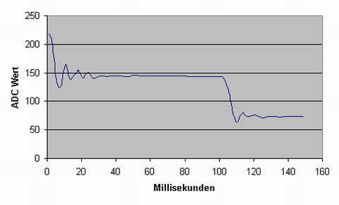 Im Augenblick wird im Millisekunden Takt gemessen. Ich hatte es mal schneller versucht, bekam aber Timingprobleme zwischen der Geschwindigkeit des ADC, der ISR zur ADC-Ergebnisabfrage und der Übertragung der Meßwerte zum PC. Da muß ich jetzt nochmal ran und optimieren. Die 1ms Auflösung ist mir zu gering.