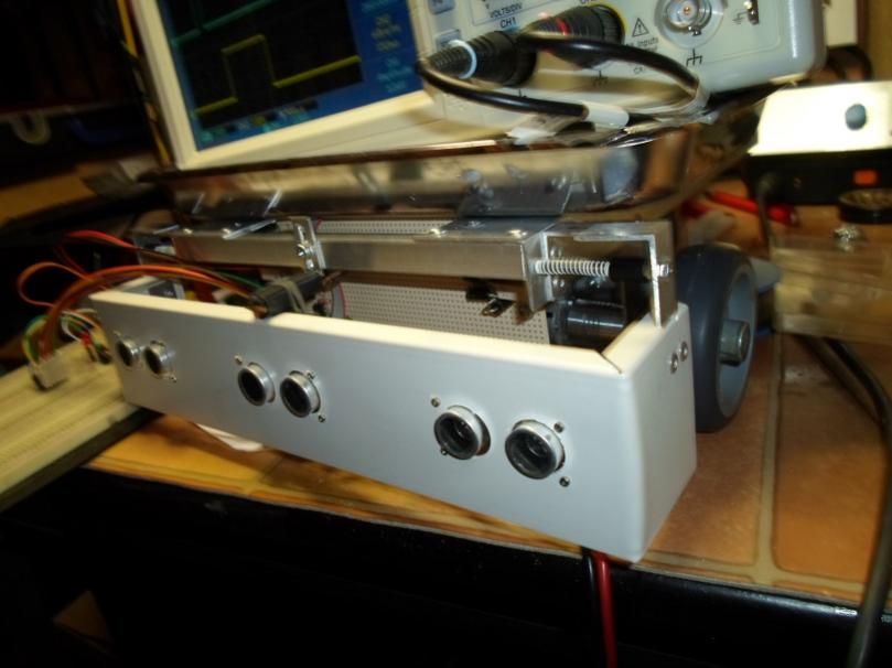 Ich habe gerade angefangen, an einem kleinen autonomen 3W2D Roboter mit einer ca. A4 großen Ladefläche zu tüfteln. Das Chassis besteht aus 1,5mm starken Baumarkt-Aluwinkeln. Gedacht ist das zum Spaß als Buttler, der kleine Gegenstände indoor transportieren kann. Wahrscheinlich wird er Spielzeuge meiner Kleinen oder ein Stück Obst oder ein Getränk fahren, aber hauptsächlich mir als Spielwiese für µC und Elektronik dienen![]()