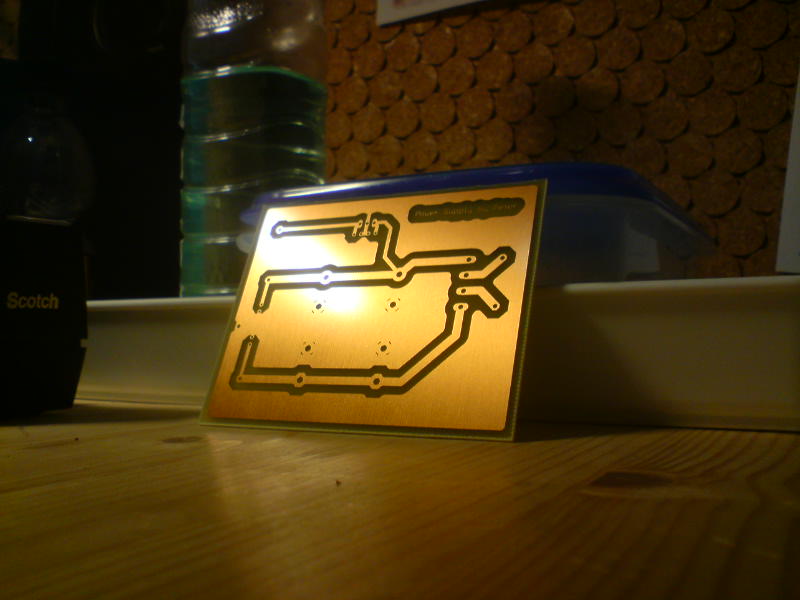 Ich habe heute erfolgreich meine erste Platine belichtet und geätzt. Ich hatte sie zuerst zu früh aus dem Ätzbad genommen. Aber das Mulitmeter hat mir schnell gesagt, dass das "violette" noch Kupfer ist. Also nochmals in die Ätzschale gelegt. Was tun wenn das Bad bereits zu kalt ist? Den Harföhn genommen und aufgeheitzt. Gleichzeitig hat es so auch eine gute Umwälzung gegeben...