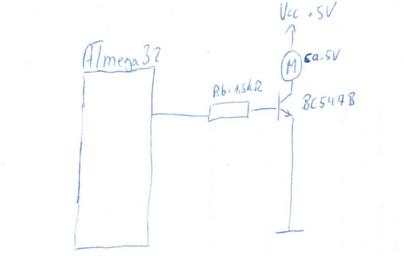 Meiner Meinung nach müsste es doch mit einem Transistor realisierbar sein, oder? Der Motor läuft bei 5V und 400mA.