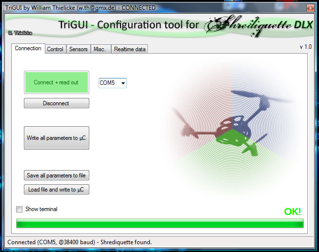 Meine Konfigurations-GUI ist nun fast fertig. Es funktioniert sehr schön und ist echt praktisch. Was noch fehlt ist die Einbindung von avrdude, so dass man neue Firmware direkt aus meiner GUI flashen kann. Allerdings habe ich im Moment noch ein paar Probleme mit avrdude, dem Bootloader auf einem Arduino (auf meinem ist z.B. gar keiner mehr drauf, hatte ich gelöscht) und dem RS232 Kabel. Aber das wird schon noch. Außerdem muss ich nun auf ein m328 umsteigen, da der Platz auf dem m168 vielleicht irgendwann etwas knapp wird.